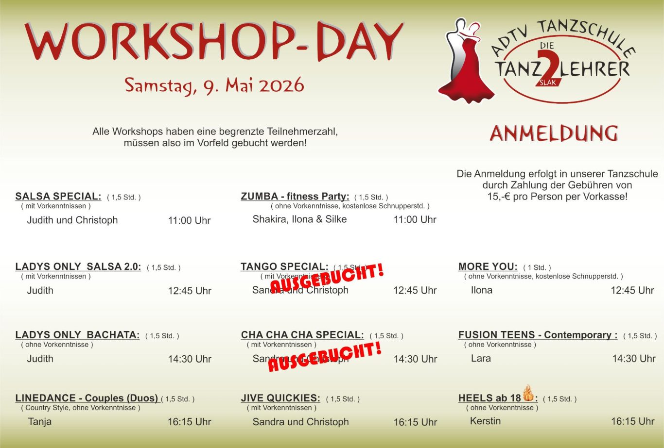 2 x die Woche habt Ihr die Möglichkeit für 1,5 Stunden den Saal zum Üben zu nutzen.